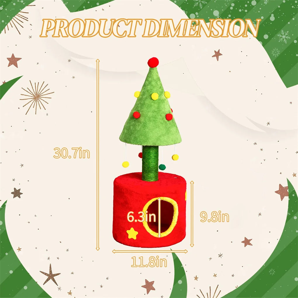 Deck the paws with this 30" Christmas Tree Cat Scratching Post—a festive tower featuring a cozy cat house, durable sisal post, and jingly hanging balls for nonstop play. Ideal for indoor kittens and small cats, it’s the ultimate blend of holiday charm and claw-friendly fun.