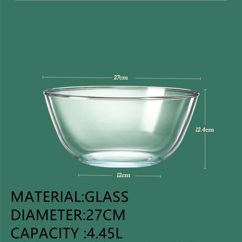 🥗 4.45L Large Capacity Glass Bowl – Multi-Purpose Kitchen Essential