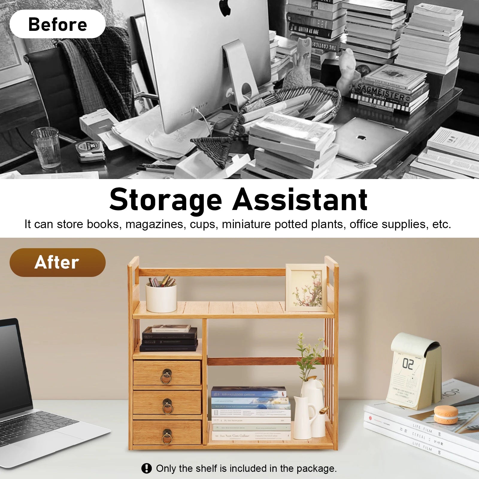 Bamboo Tabletop Bookshelf Storage Organizer Display Shelf