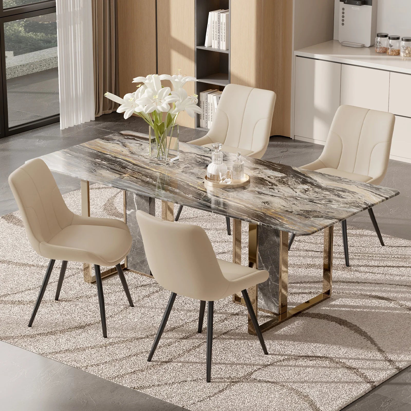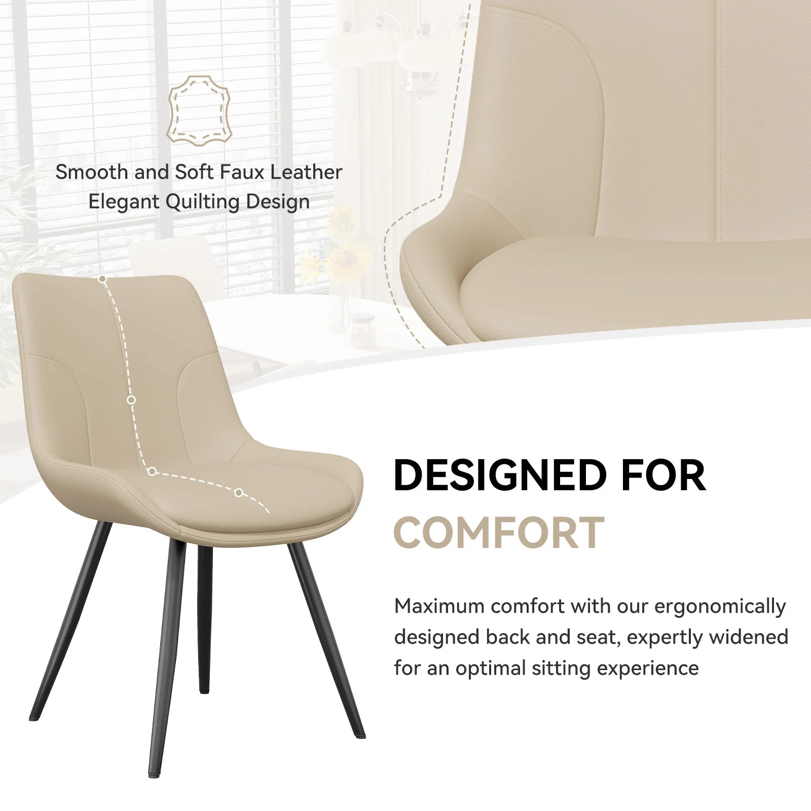 Upholstered Dining Chairs Set of 2 Modern Faux Leather Dining Room Chairs with Thick Cushion and Metal Legs